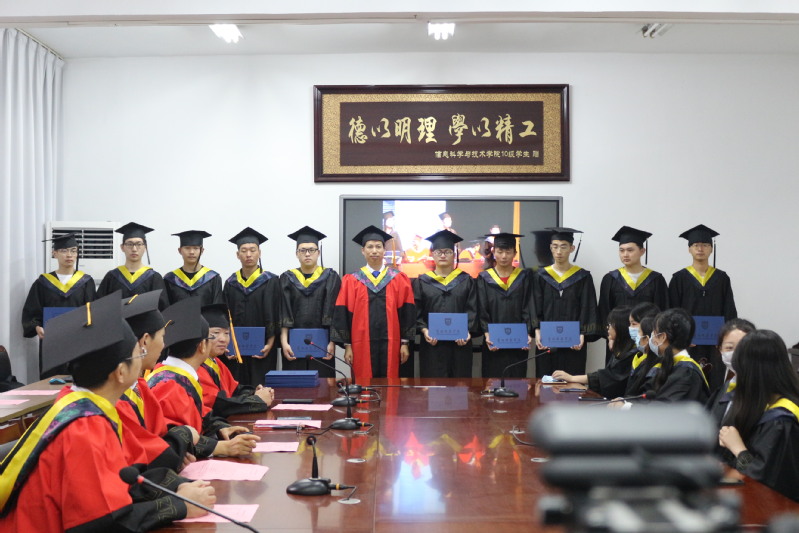 此外,主会场上,校党委副书记、副校长黄志纯宣读了表彰优秀毕业生的决定,我院44名毕业生入选;校党委常委、副校长崔刚授予学士学位的决定,我院393名毕业生获学士学位。分会场上,院党总支书记殷凤春,党总支副书记、院长朱立才为毕业生代表拨穗正冠、颁发学历学位证书并和毕业生合影留念。