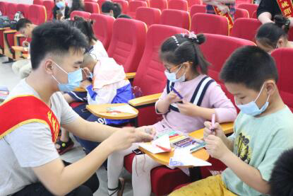 活动中,志愿者们为聋哑小朋友介绍端午节由来,邀请手语老师现场同步翻译,让聋哑小朋友在历史中感受中国传统节日的独特魅力。期间,大学生志愿者带领聋哑小朋友制作手工小粽子,增强孩子们的动手能力,随着一个个漂亮精巧的粽子亮相,现场传来阵阵欢声笑语,充满爱的氛围。最后,志愿者们为聋哑小朋友们赠送由江苏银行精心准备的书包、水彩笔等学习用品,鼓励他们用心学习、快乐成长,将来成为祖国建设所需要的栋梁之才。