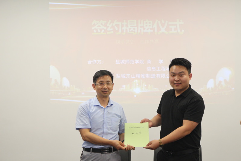 活动中,我院、商学院分别与盐城市联鑫钢铁有限公司、江苏中鼎建材集团有限公司和盐城东山精密制造有限公司签署暑期社会实践协议书和就业创业协议书,并行了社会实践基地和就业创业实践基地揭牌。