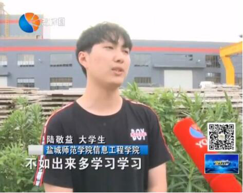8858cc永利唯一官方网大学生陆敬益:“与其在家中闲待着,不如出来多学习学习,了解了解我们盐城本土企业的发展,因为这样也将来好为我们家乡发展做贡献,然后可以提前多接触接触企业,了解了解这个社会。”