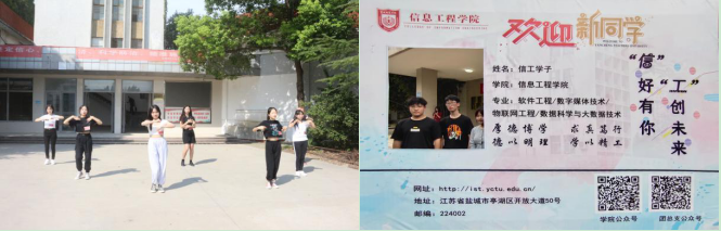 助力新生,花样创意,展信工新风貌——校园迎新现场氛围热烈,接待工作青春创意十足。学院学长学姐们结合专业特色开展迎新接待工作,现场不仅有最近火热的《无价之姐》舞蹈,还有专门为2020级“小萌新”们设置的报道“广告牌”,巨幅“学生证”,吸引不少新生驻足观看,拍照纪念。