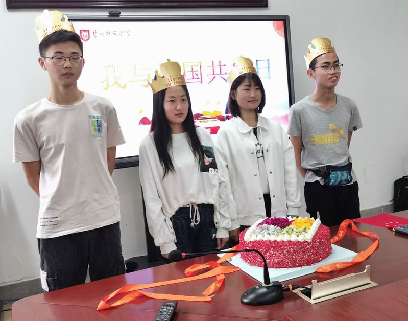 10月1日上午,我院举行“庆国庆.我和祖国共生日”庆祝活动,院党总支书记赵任凭、相关班主任、全体辅导员与4名国庆日出生的同学、少数民族学生参加活动。