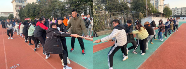 拔河比赛促团结。在冬日的暖阳里,拔河比赛拉开了序幕。哨声响起,现场氛围瞬间高涨,双方队员迅速进入“战斗”状态,勒绳下腰,降低重心,齐心协力往后拉。同学们精神饱满、凝心聚力、斗志昂扬,充分体现了信工学子团结合作、奋力拼搏、健康向上的精神风貌。最终软件20(1)班获得冠军。
