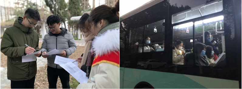 通榆校区图书馆门前大道上,考研送考车整装待发,考研学子们陆续来到集合地点候车。赵任凭书记、姜琳副书记为同学们加油鼓劲,要沉着应战,学工办季芳芳老师叮嘱注意事项。学生会同学们组织有序,忙碌于车辆之间,温馨短信提醒天气预报,帮助学长学姐找到相应的车辆,确保预约乘车考生全部上车。考生们坐上舒适温暖的送考专车,感受到来自学校和学院的关心和爱护。