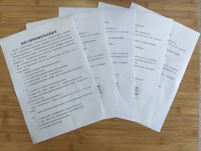 班会课上,各位班主任宣读了学生手册相关条例,重点强调了考试注意事项、考试纪律以及考试失信行为的危害,警醒全体同学严守诚信底线。此外,学生自发组织“诚信考试”倡议书签名活动,此活动得到了学生们的积极响应。