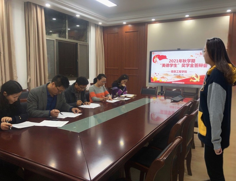 10月26日下午,我院2021年“美德学生”奖学金答辩评审会在学院党员之家举行。院党委书记赵任凭,党委副书记、副院长姜琳,党委委员徐贵伍、季芳芳,分团委书记卞雅妮担任评委,7名候选同学参加答辩。
