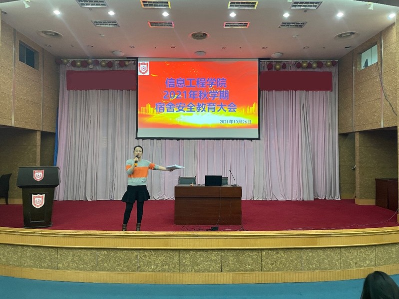 10月25日和26日下午,我院在通榆校区操场和国际会议中心分别召开大一全体新生、大二大三全体女生安全教育大会。学院党委副书记、副院长姜琳,辅导员薛殿春、王金铭参加会议,会议由薛殿春主持。