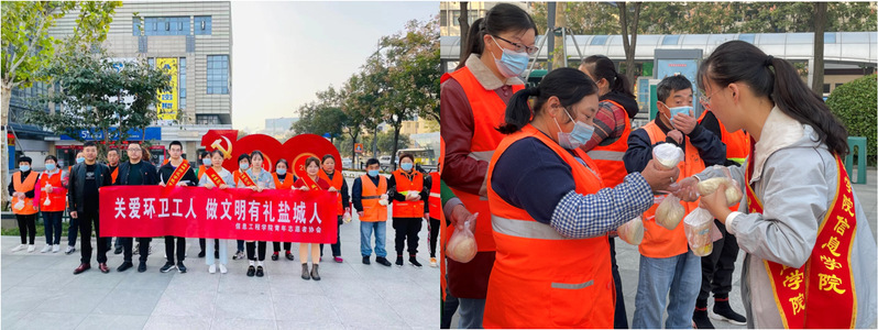 10月26日是环卫工人节。当日,我院青年志愿者协会组织开展“关爱环卫工人,做文明有礼盐城人”环卫工人慰问活动,学院大一、大二志愿者15人参加了活动。