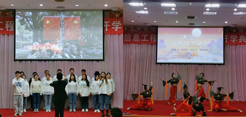 新生入学教育主题文艺表演掀起了活动的高潮,朗诵《建党百年 青春逐梦》、舞蹈《敦煌飞天》、对唱《开放大道50号》、哑剧《如此攀比》、街舞《奋斗吧》精彩纷呈,展示了我院学生的精神风貌和学院奋发向上的文化氛围。