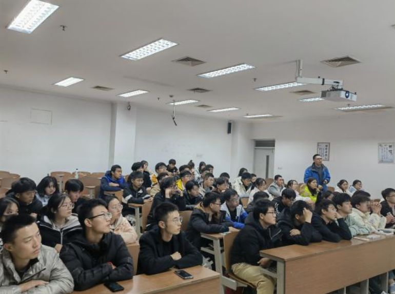 郭威从自己读博的经历,给同学们讲述了学习的重要性和大学时光的紧迫性,给出了三点建议:一是狠抓专业课学习;二是拓展个人综合能力;三是积极参加学科竞赛,拒绝躺平,科学合理职业生涯规划,踏实前行。
