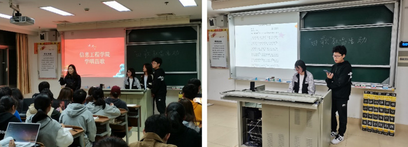 11月2日下午7:00,我院组织2021级新生开展学唱“四歌”活动,全体新生参加,本次活动由学工办主任季芳芳主持。