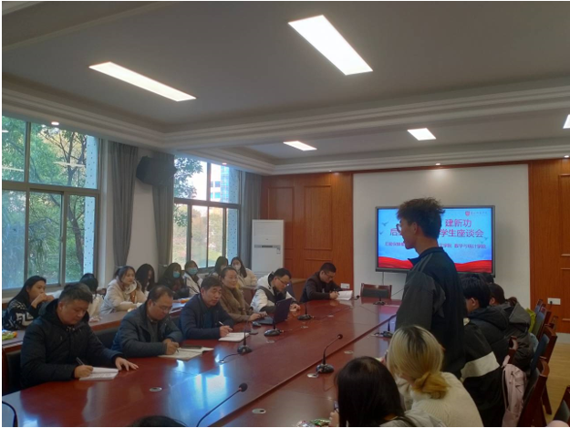 为深入推进党史学习教育,切实做到为学生办实事、解难事,强化后勤管理服务育人工作,12月22日下午,我院联合文学院、数学与统计学院在204会议室召开“两在两同”建新功 后勤服务联系师生座谈会。后勤党总支书记兼后勤基建处副处长、后勤保障集团副总经理宋新江,后勤保障集团综合科科长朱荣,环境服务中心主任张化凯,能源管理科科长梁越,我院党委委员、学工办主任季芳芳和三个学院六十余名师生代表参加座谈会。会议由我院党委副书记姜琳主持。