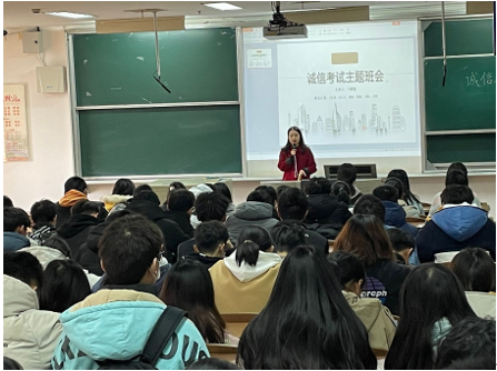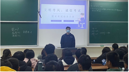 2021年的第一学期期末考试即将来临,为弘扬诚信精神,加强诚信意识,12月22日晚,我院学工办在各班晚自习教室举办以“文明考风,诚信考试”为主题的期末动员大会。