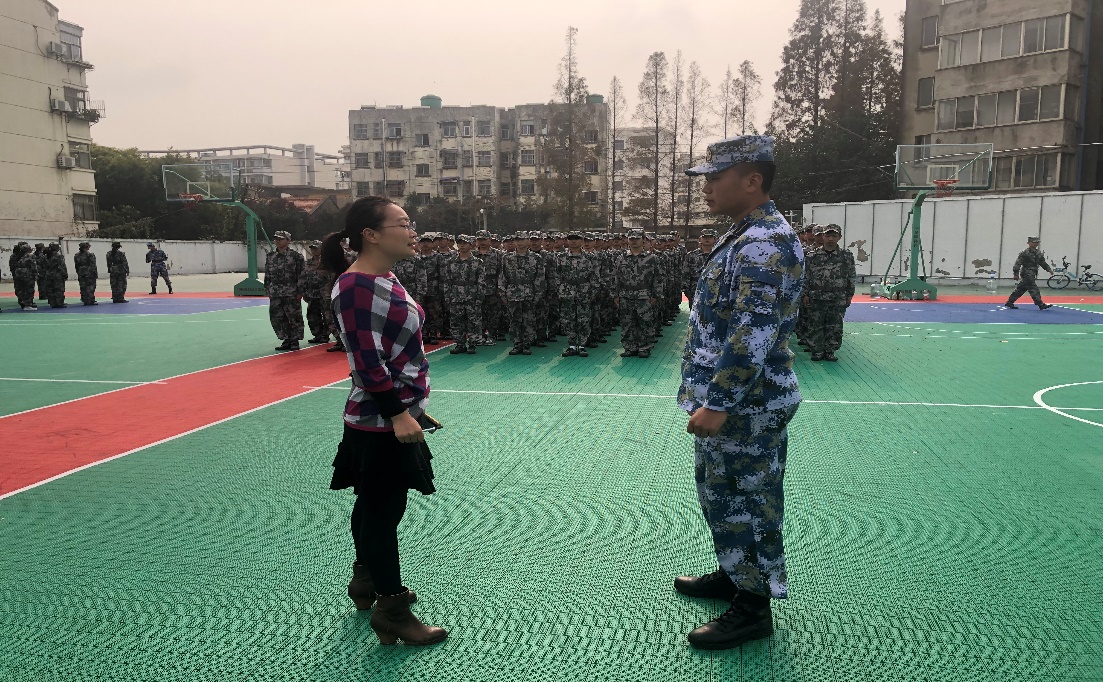 11月1日下午,我院党委书记赵任凭,党委副书记、副院长姜琳,党委委员、学工办主任季芳芳,辅导员薛殿春与王金铭来到田径场,了解我院大一新生军训情况,表达了学院领导老师对新生的殷切关怀。