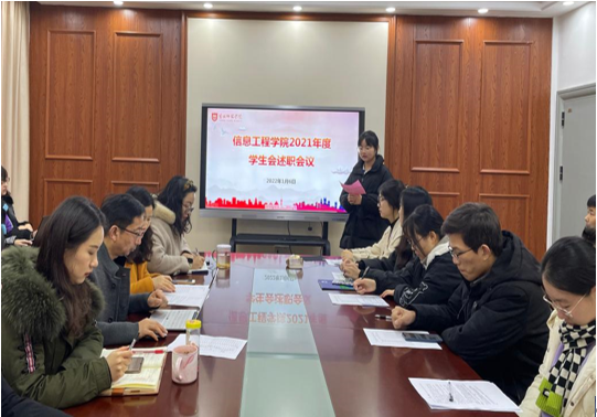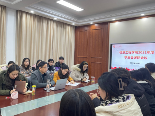 1月6日下午,我院在党员之家召开2021年度学生会述职会议。院党委书记赵任凭出席会议,全体辅导员及院学生会主席团、各部门负责人参加会议。会议由学生会轮值主席丁敏主持。