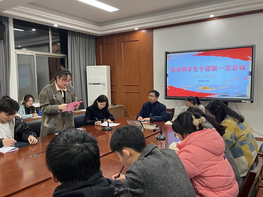 3月9日晚上,我院在院会议室召开2022春学期学生干部第一次会议。党委书记赵任凭、副书记姜琳,全体辅导员和学生会全体学生干部参加会议。会议由学工办主任季芳芳主持。