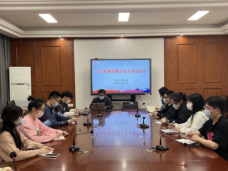 为了加强学生干部队伍建设,提升学生干部在校园封闭管理中的服务能力,4月26日晚,我院在学院会议室组织召开19级学生干部座谈会。值班辅导员毛阿璇、薛殿春以及学院学生会主要学生干部参加会议,会议由院党委书记赵任凭主持。