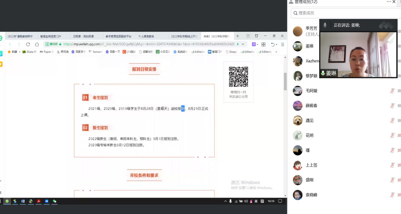 会上还对部分学生提前返校、“辅导猫”系统使用、暑期谈心谈话工作总结、新生宿舍分配、学生返校核酸检测要求等事项作出说明。