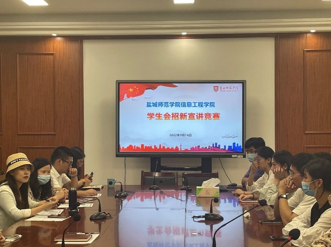 竞招新宣讲,展部门风采。9月14日,学院在学院会议室组织举办2022年学生会招新宣讲竞赛活动,学工办主任季芳芳、团委书记卞雅妮、辅导员毛阿璇、薛殿春,以及学生会主要学生干部参加此次活动。学生会六大部门(中心)依次进行宣讲比赛,通过极具创意的短视频、PPT、照片等展现部门特色和优势,老师们精彩点评,肯定成绩与付出,并提出修改意见和建议。